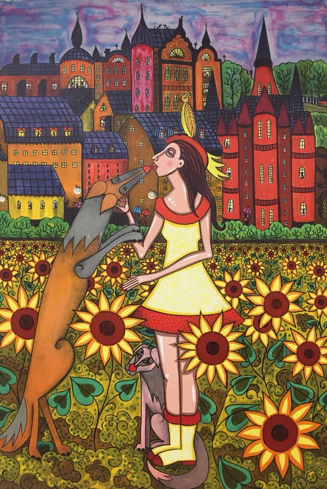 Angelica Wiik är en nutida svensk konstnär som älskas av sin publik för sina färgexplosiva och expressiva målningar. Det är uttalad feminism och kärlek till människor, stadslandskap och djur som får hennes tavlor att lyfta och hon är inte blyg när det gäller färgsättning eller val av motiv. Hennes bilder är som sköna drömmar med musiker på taken och hundar i fönstren. Det är bilder som förför den betraktare som vill bli förförd. Det är bilder man blir glad av att betrakta.