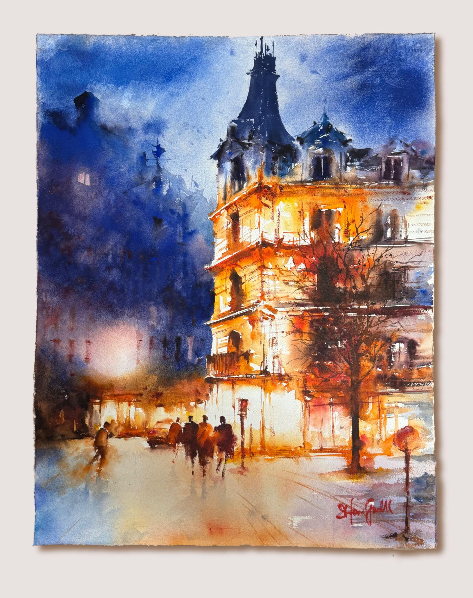 Livfulla stadsvyer och kärleken till motljus – det är alla återkommande motiv i Stefan Gadnells konstnärskap. En stad, ett hus, bilar, några människor som är på väg, det är viktigt att det händer något, att bilden har en berättelse. Stefans akvareller är fyllda med rörelse och närvaro, men det är betraktaren som gör bilderna levande.