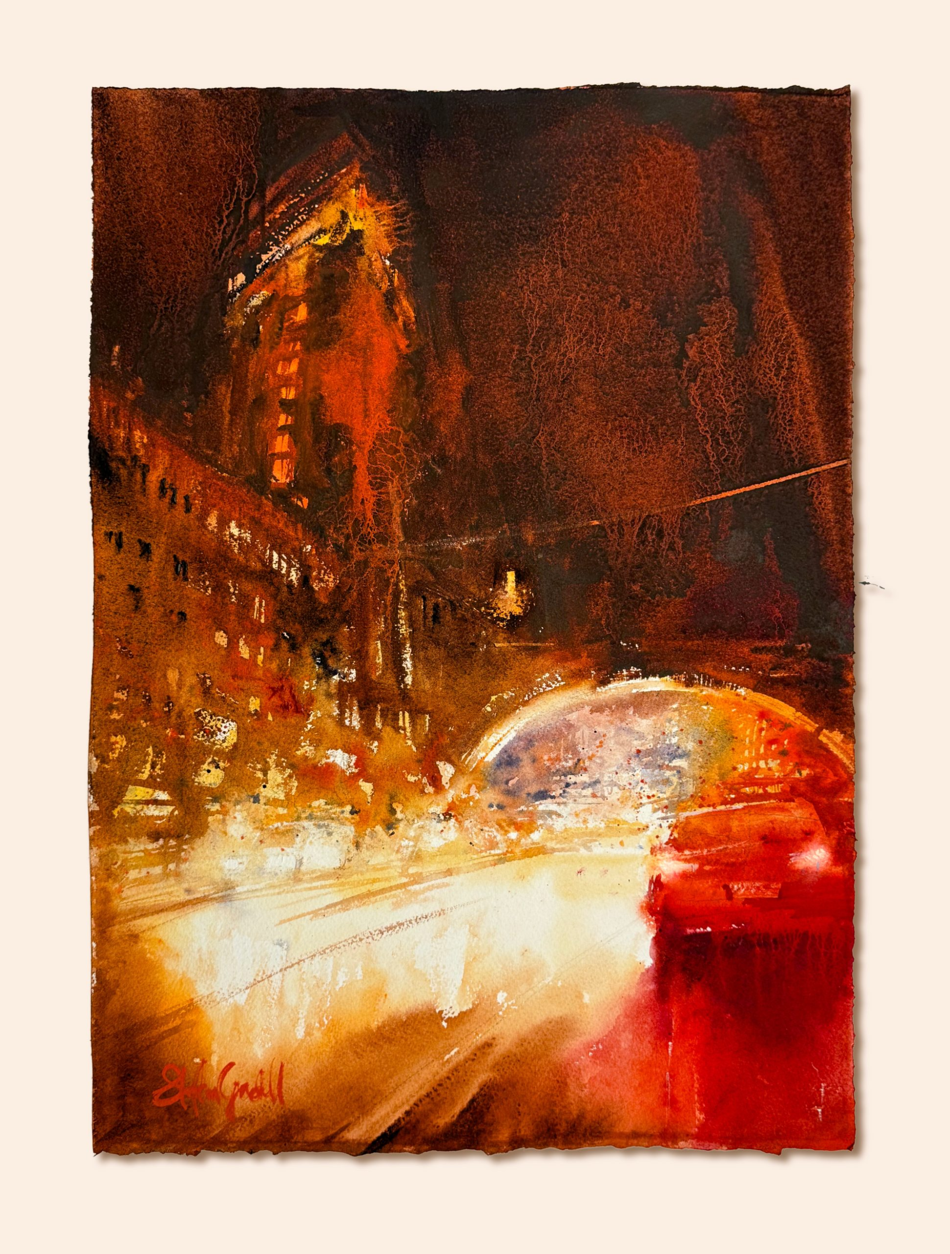 Livfulla stadsvyer och kärleken till motljus – det är alla återkommande motiv i Stefan Gadnells konstnärskap. En stad, ett hus, bilar, några människor som är på väg, det är viktigt att det händer något, att bilden har en berättelse. Stefans akvareller är fyllda med rörelse och närvaro, men det är betraktaren som gör bilderna levande.