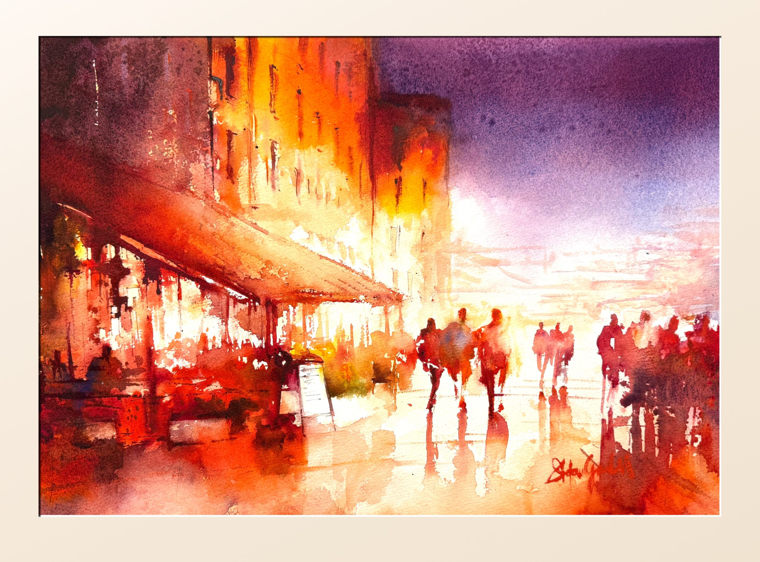 Livfulla stadsvyer och kärleken till motljus – det är alla återkommande motiv i Stefan Gadnells konstnärskap. En stad, ett hus, bilar, några människor som är på väg, det är viktigt att det händer något, att bilden har en berättelse. Stefans akvareller är fyllda med rörelse och närvaro, men det är betraktaren som gör bilderna levande.