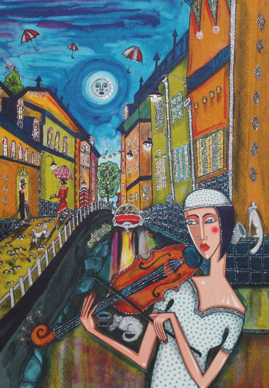 Angelica Wiik är en nutida svensk konstnär som älskas av sin publik för sina färgexplosiva och expressiva målningar. Det är uttalad feminism och kärlek till människor, stadslandskap och djur som får hennes tavlor att lyfta och hon är inte blyg när det gäller färgsättning eller val av motiv. Hennes bilder är som sköna drömmar med musiker på taken och hundar i fönstren. Det är bilder som förför den betraktare som vill bli förförd. Det är bilder man blir glad av att betrakta.