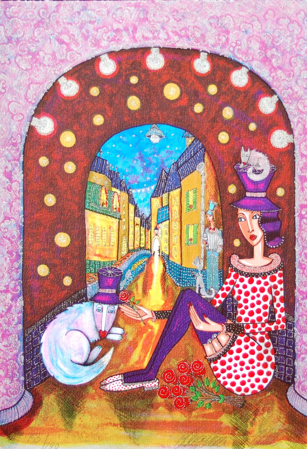 Angelica Wiik är en nutida svensk konstnär som älskas av sin publik för sina färgexplosiva och expressiva målningar. Det är uttalad feminism och kärlek till människor, stadslandskap och djur som får hennes tavlor att lyfta och hon är inte blyg när det gäller färgsättning eller val av motiv. Hennes bilder är som sköna drömmar med musiker på taken och hundar i fönstren. Det är bilder som förför den betraktare som vill bli förförd. Det är bilder man blir glad av att betrakta.