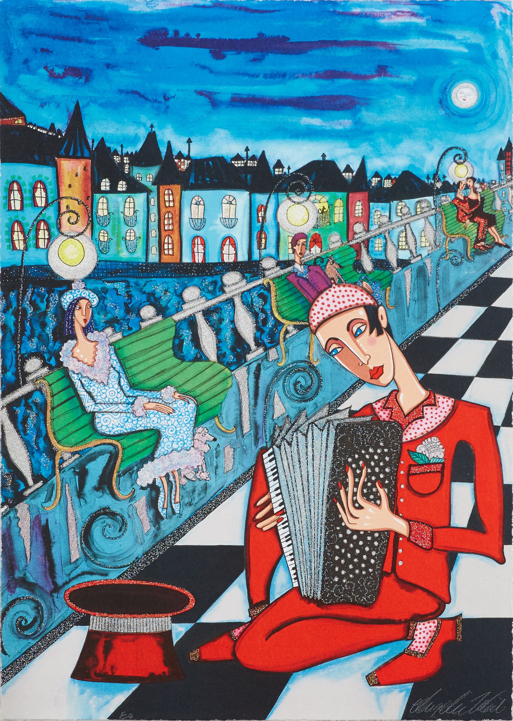 Angelica Wiik är en nutida svensk konstnär som älskas av sin publik för sina färgexplosiva och expressiva målningar. Det är uttalad feminism och kärlek till människor, stadslandskap och djur som får hennes tavlor att lyfta och hon är inte blyg när det gäller färgsättning eller val av motiv. Hennes bilder är som sköna drömmar med musiker på taken och hundar i fönstren. Det är bilder som förför den betraktare som vill bli förförd. Det är bilder man blir glad av att betrakta.