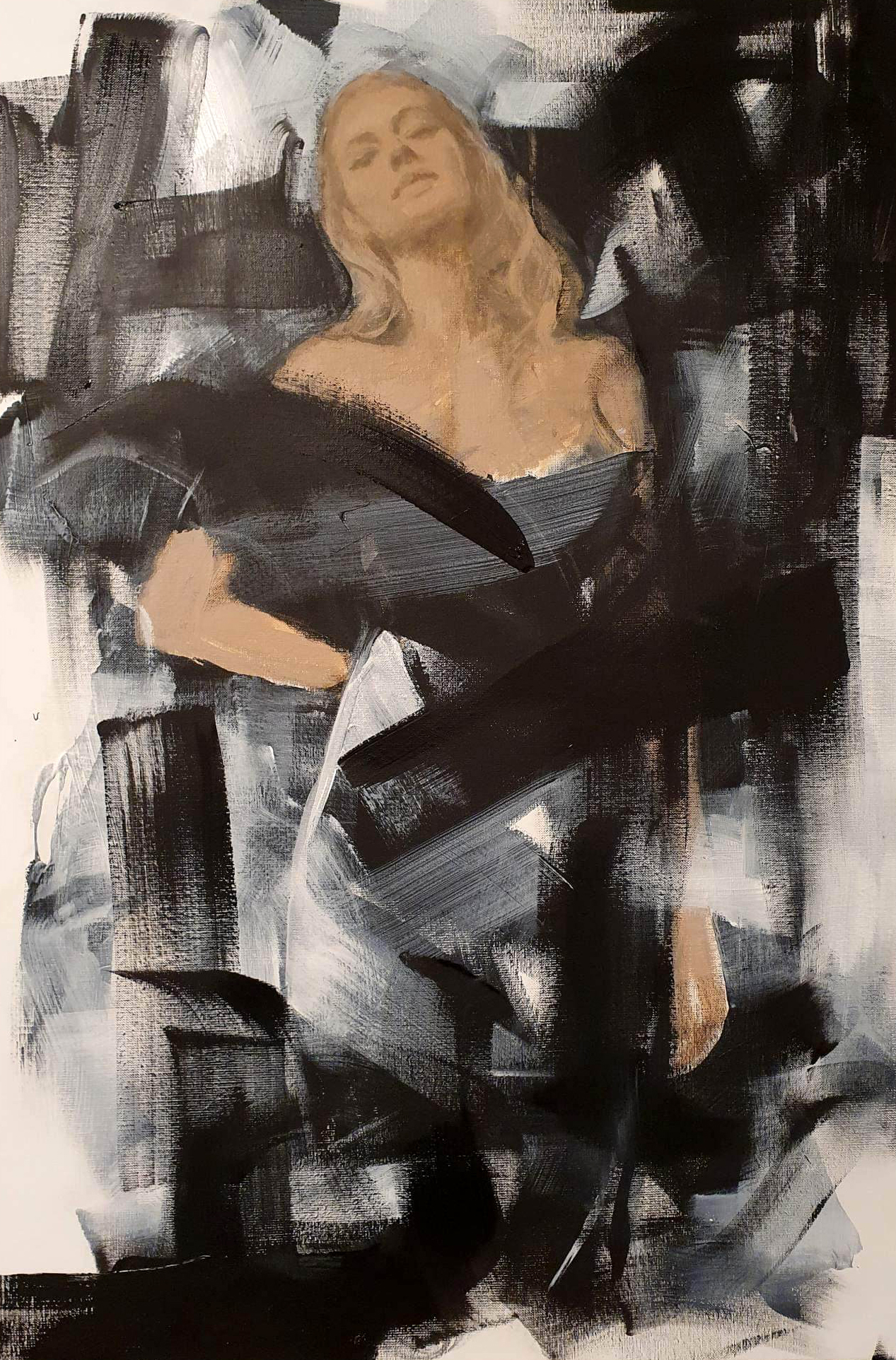 Carolina målar främst med akryl på duk och hoppar mellan att använda pensel och målarkniv då hon älskar kontrasterna mellan mjukt och hårt.