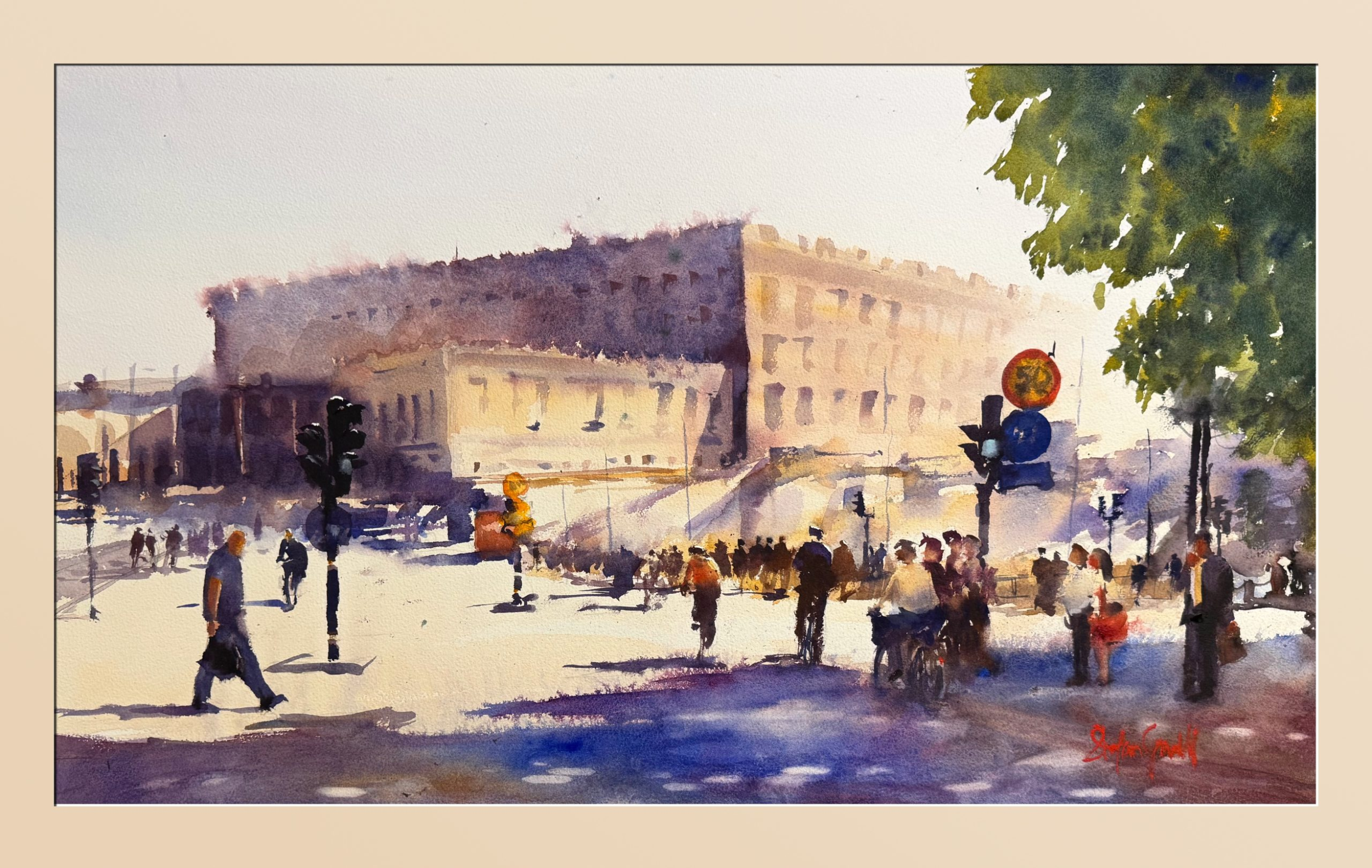 Livfulla stadsvyer och kärleken till motljus – det är alla återkommande motiv i Stefan Gadnells konstnärskap. En stad, ett hus, bilar, några människor som är på väg, det är viktigt att det händer något, att bilden har en berättelse. Stefans akvareller är fyllda med rörelse och närvaro, men det är betraktaren som gör bilderna levande.